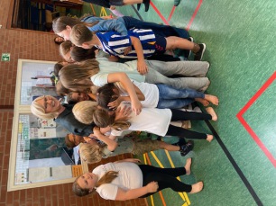 Ein großer Wunsch der Absolventen war es, ihre alte Schule zu besuchen. Die Schulleitung war einverstanden und die Koordinatorin der mittlerweile Offenen Ganztagsschule war zu einer kleinen Führung durch unsere „alte Schule“ bereit.