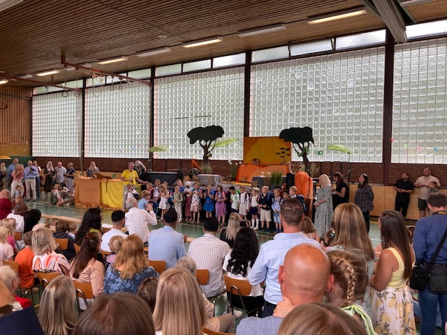 Das Schuljahr 2022/2023 ist mit bewegenden Fürbitten für die Viertklässler, lauter Musik, fröhlichem Tanz, eingeübten Vorträgen und Ehrungen zu Ende gegangen. Das alles war sehr schön und hat uns so manches Tränchen in die Augen getrieben.