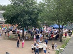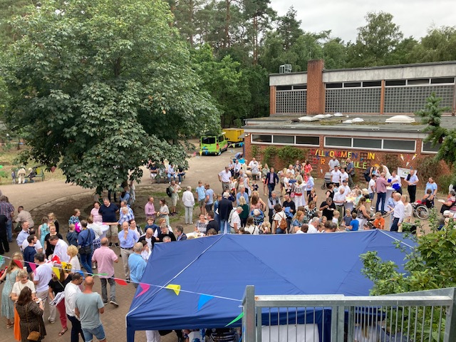 Damit den zahlreichen Gästen die Zeit nicht zu lang wurde, versammelten sie sich auf dem Schulhof und ließen sich dort vom Förderverein verköstigen.
