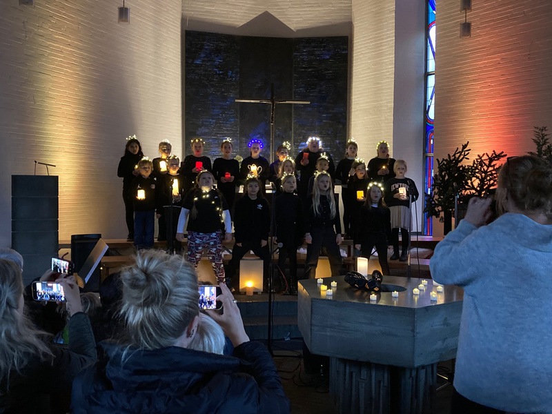 06.12.2025: Während des Nachmittagsbetriebes haben Frau Meier und die MuSiTa-Kinder ihren Auftritt für den Nikolausmarkt in Ehlershausen einstudiert. Als leuchtende "Lichterkinder" sangen die Erst- bis Viertklässler in der Kirche und machten sowohl ihre Eltern als auch ihre Waldschule ganz stolz!