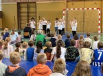 Danach rief der Schulleiter der Astrid-Lindgren-Grundschule Burgdorf, Herr Blumenstein, der spontan für unsere erkrankte Frau Tönsing eingesprungen war, die Kinder der Klasse 1a auf. 19 Mädchen und Jungen machten sich sodann mit Frau Romboy-Päschke auf den Weg in ihr neues Klassenzimmer. Als nächstes wurden ebenfalls 19 Kinder mit Frau Quack in den Klassenraum der 1b entlassen.